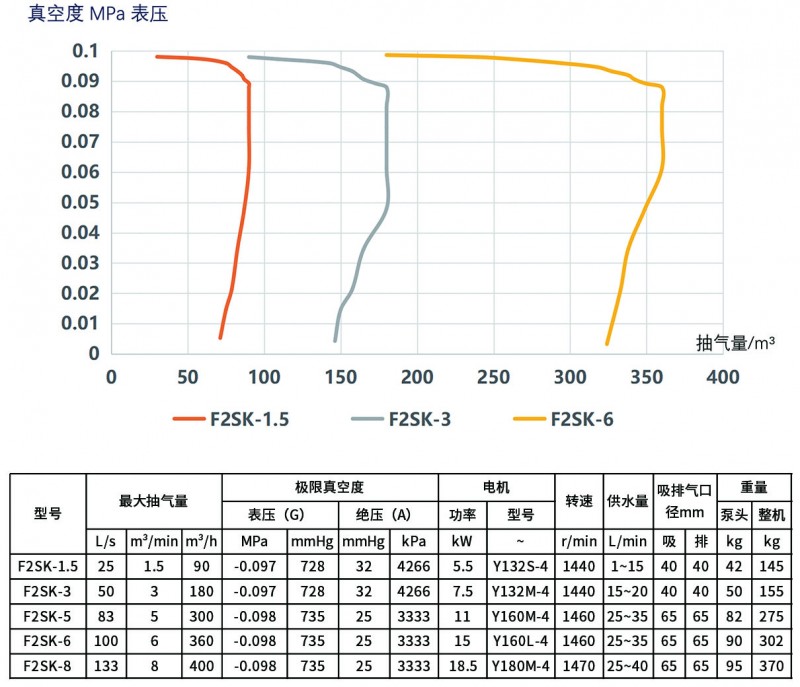 F2SK系列與FSK系列設(shè)計類似,同樣采用了徑向葉輪,它特點是增加了一個副葉輪,可以將真空度由-0.093提升到-0.098MPa。