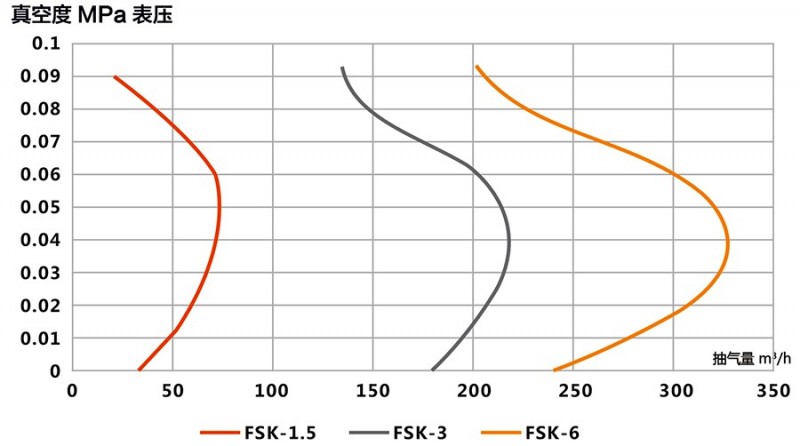適應(yīng)于90~360m3/h的低抽氣量區(qū)間,極限真空度較低,可增加電機(jī)功率作為壓縮機(jī)使用。